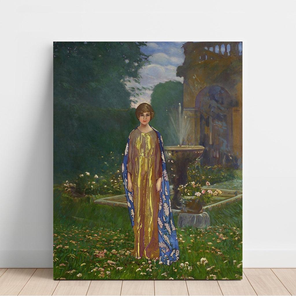 Druk artystyczny | Dama w ogrodzie przy fontannie - Wiosna - Leon Kamir-Kaufmann