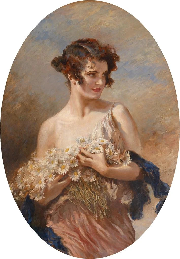 Druk artystyczny | Dama z bukietem margaretek - Leopold Schmutzler