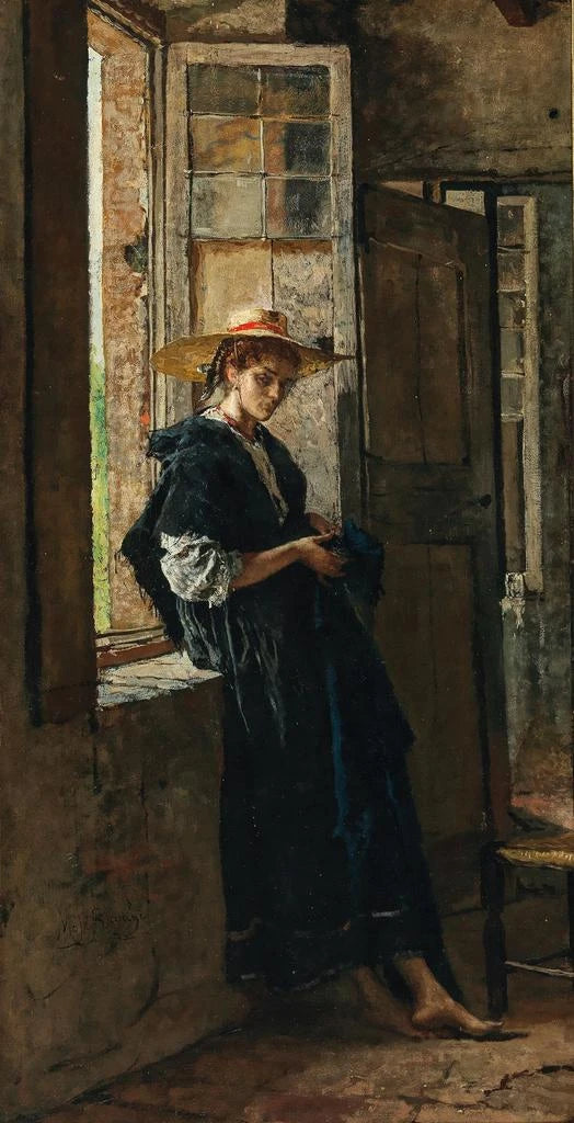 Druk artystyczny | Dama w kapeluszu z słomą przy oknie - Mosè Bianchi