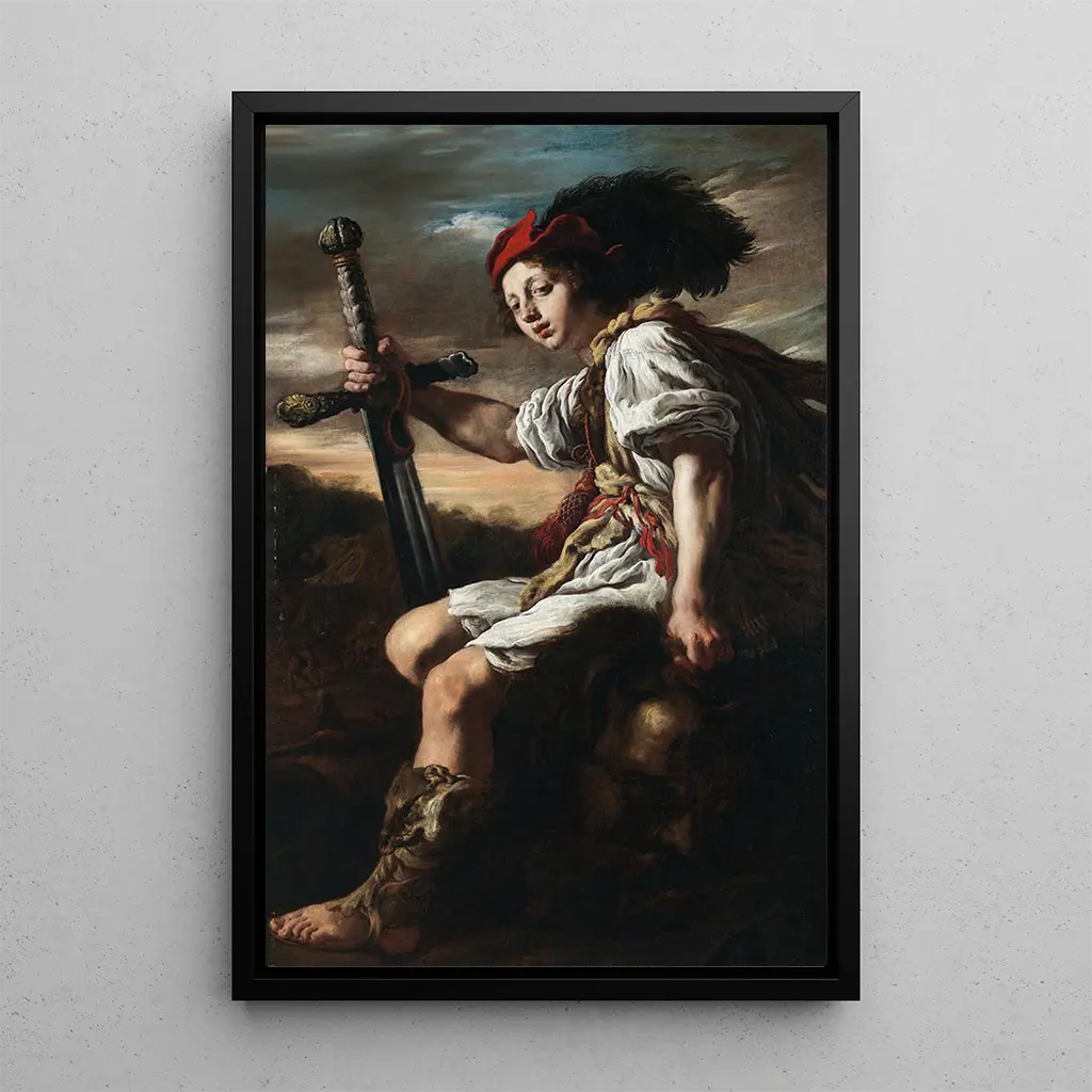 W tym uderzającym dziele Domenico Fetti uchwycił decydujący moment walki między Davidem a Goliatem. Dynamiczna kompozycja, z triumfującym Davidem, podkreślona jest żywymi kolorami i uderzającymi kontrastami. Drobne szczegóły odciętej głowy Goliata oraz wyraz dumy na twarzy Davida tworzą atmosferę jednocześnie dramatyczną i heroiczna. Technika Fettiego, łącząca clair-obscur i realizm, ożywia tę scenę biblijną, zachęcając widza do odczuwania intensywności tego historycznego momentu.