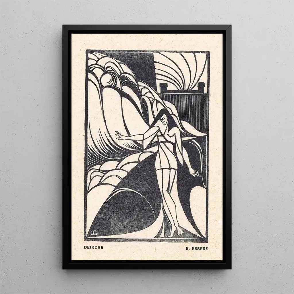 "Deirdre" Bernarda Essersa to dzieło, które zanurza widza w świecie pełnym poezji i melancholii. Przedstawienie kobiecej postaci, delikatnie namalowane, wywołuje głębokie emocje, które wykraczają poza zwykły portret. Ciepłe kolory i subtelne odcienie tworzą intymną atmosferę, w której każdy szczegół zdaje się opowiadać historię. Technika druk artystyczny na płótnie pozwala Essersowi uchwycić światło w sposób podkreślający delikatne piękno jego bohaterki, zachęcając do cichej i pełnej szacunku kontemplacji kobiecej istoty.