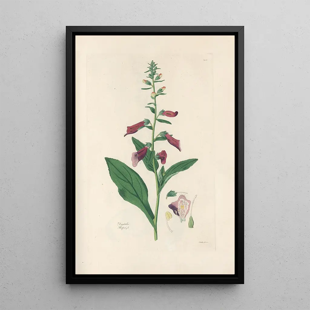 W tej reprodukcji obrazu Digitalium monographia Pl04, John Lindley przenosi nas w serce bujnej natury. Żywe kolory i drobiazgowe detale przedstawionych roślin ukazują opanowaną technikę akwareli, oferując atmosferę zarówno naukową, jak i poetycką. Każdy liść, każdy płatek jest odwzorowany z precyzją, która zachęca do uważnego obserwowania, jakby można było niemal poczuć zapachy kwiatów. To dzieło, będące skrzyżowaniem sztuki i botaniki, przenosi nas do świata, w którym naturalne piękno jest celebrowane z pasją.