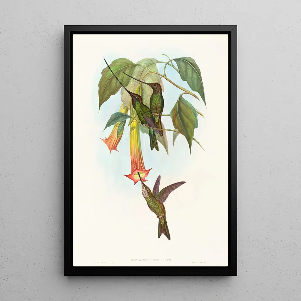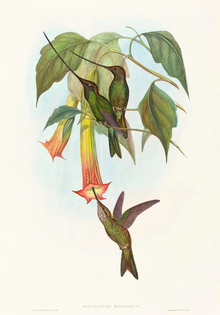 John Gould, aktywny w XIX wieku, jest często uważany za jednego z najwybitniejszych ornitologów swojego czasu. Jego pasja do ptaków skłoniła go do podróżowania po świecie, zbierania okazów i tworzenia ilustracji o niespotykanej precyzji. Pod wpływem ruchu naturalistycznego, Gould przyczynił się do dokumentacji wielu gatunków, z których niektóre nigdy wcześniej nie były opisane. Jego dzieło nie tylko wzbogaciło naukę o ornitologii, ale także wpłynęło na artystów i naturalistów swojego okresu. Druk artystyczny Docimastes ensiferus świadczy o jego zaangażowaniu w piękno i różnorodność fauny ptasiej.