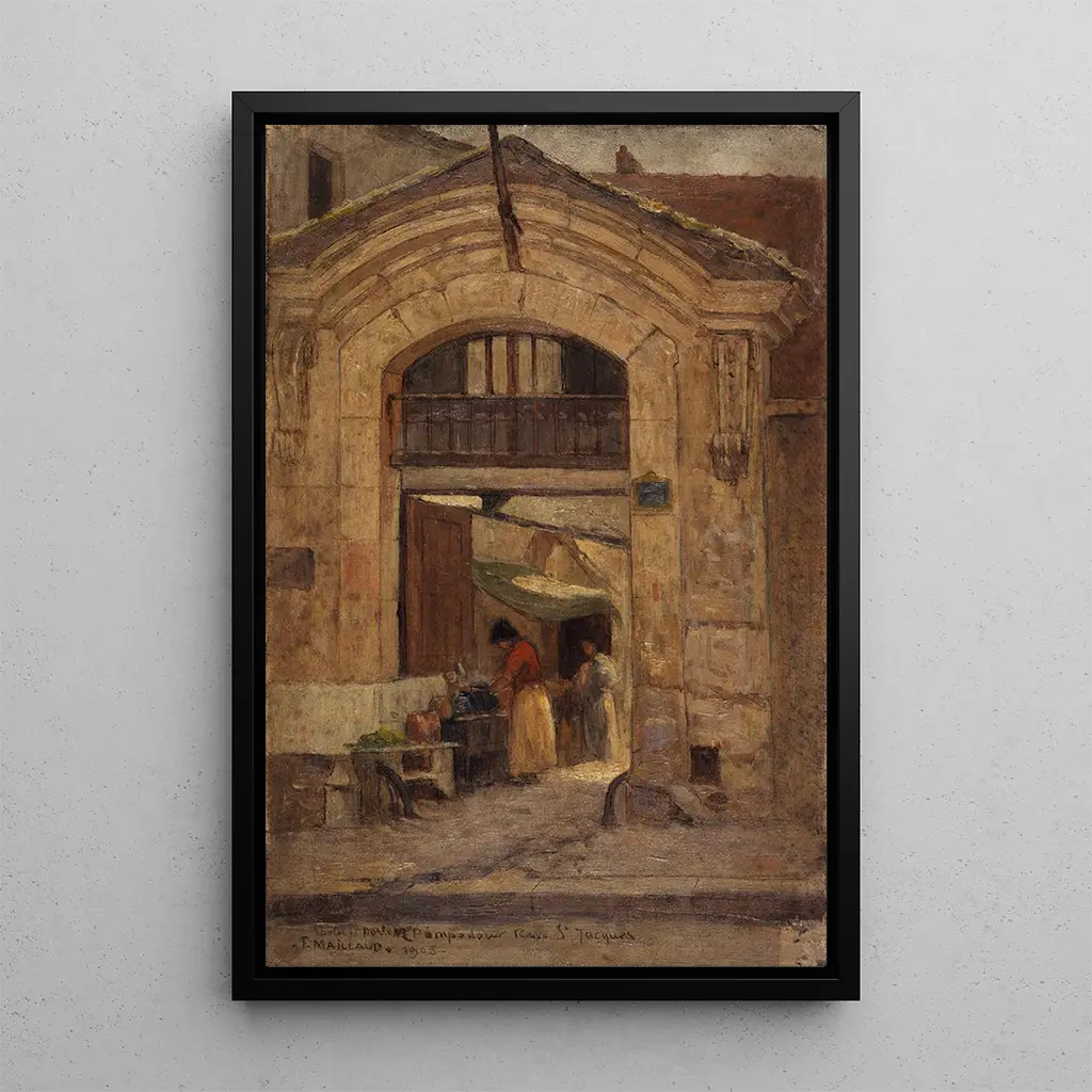 La reproduction de "Porte rue Saint-Jacques" de Fernand Maillaud évoque un instant figé dans le temps, où l'architecture rencontre la poésie. Cette toile, riche en détails, présente une porte majestueuse, encadrée par des murs chargés d'histoire. Les couleurs terreuses et les ombres délicates créent une atmosphère nostalgique, invitant le spectateur à imaginer les histoires qui se sont déroulées derrière cette entrée. La technique de Maillaud, qui mêle impressionnisme et réalisme, donne vie à cette scène urbaine, transformant un simple passage en un lieu chargé d'émotions et de souvenirs.