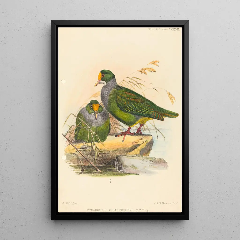 Joseph Wolf, né en 1820, est un artiste britannique d’origine allemande, reconnu pour ses illustrations naturalistes. Influencé par le mouvement romantique, il a su capturer l’essence de la nature avec une précision remarquable. Wolf a collaboré avec des scientifiques et des explorateurs, ce qui lui a permis d’étudier de près les espèces qu’il représentait. Son travail, souvent axé sur les oiseaux et les animaux, a contribué à une meilleure compréhension de la biodiversité de son époque. La reproduction de Deux oiseaux témoigne de son engagement envers la représentation fidèle de la nature, faisant de lui une figure emblématique de l’art naturaliste.