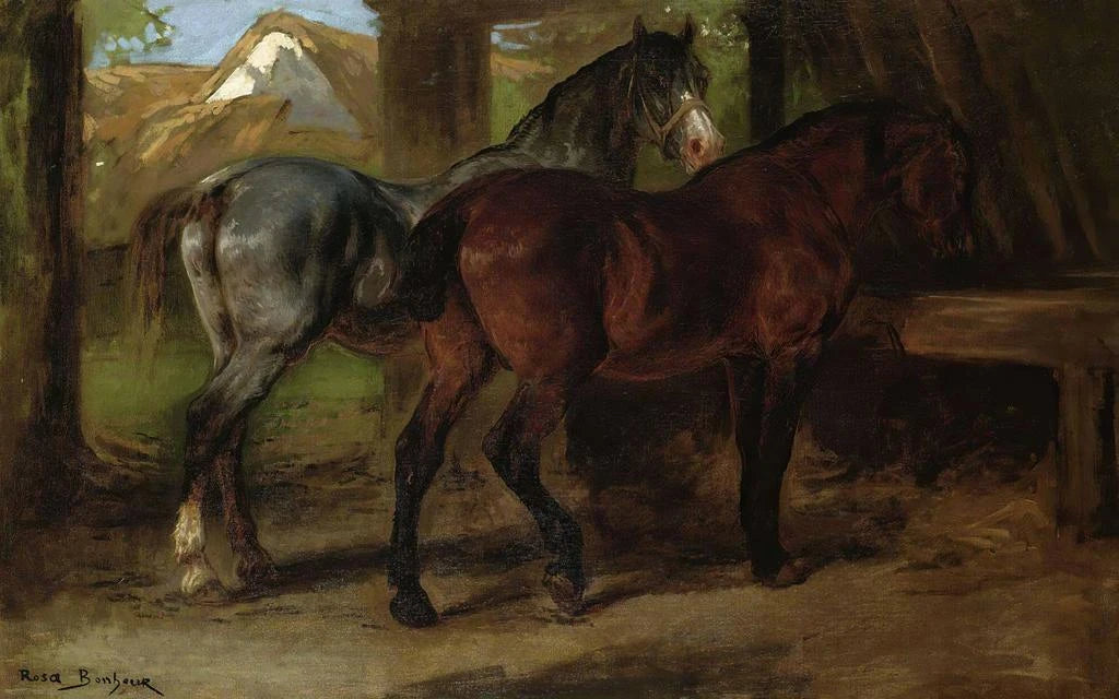 Rosa Bonheur, ikona XIX wieku, jest znana z nowatorskiego podejścia do malarstwa zwierzęcego. Pod wpływem ruchu realistycznego, zdołała wybić się w świecie sztuki zdominowanym przez mężczyzn. Jej pasja do zwierząt i zaangażowanie w ich wierne przedstawianie odcisnęły piętno na jej twórczości. "Deux chevaux dans une écurie" świadczy o jej wyjątkowym talencie i dbałości o szczegóły, cechach jej stylu. Bonheur była również pierwszą kobietą, która otrzymała Legię Honorową we Francji, podkreślając znaczenie jej dziedzictwa artystycznego.