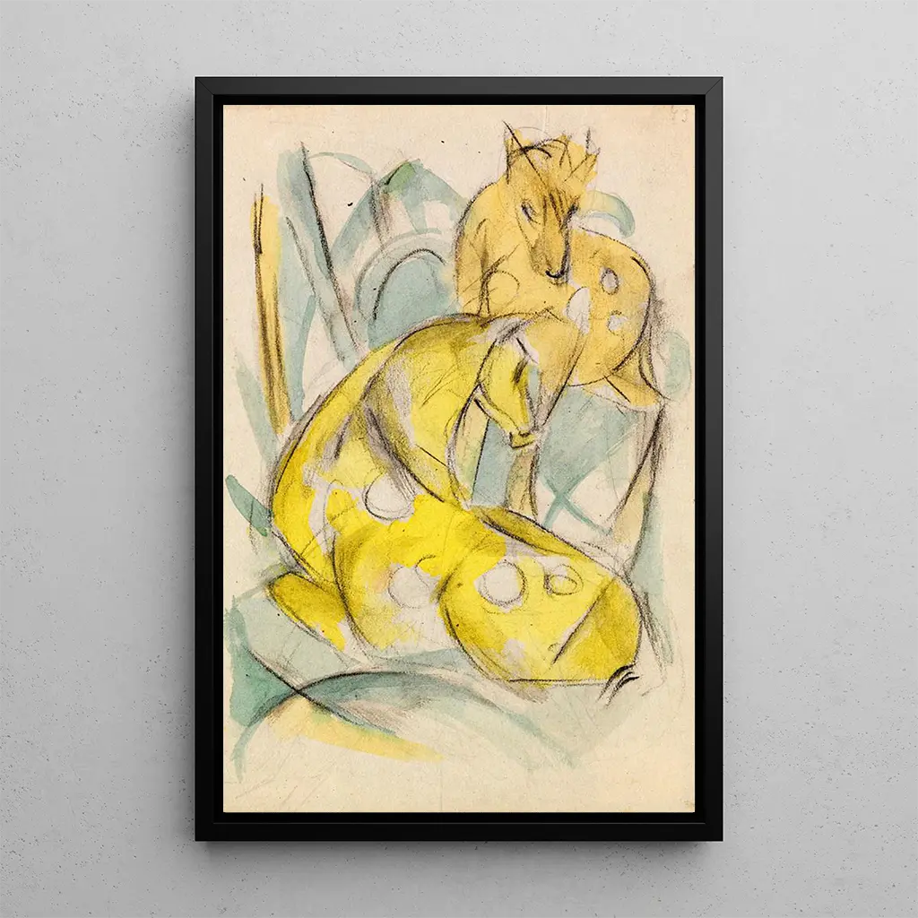 Druk artystyczny | Dwa żółte zwierzęta, dwa żółte jelenie - Franz Marc