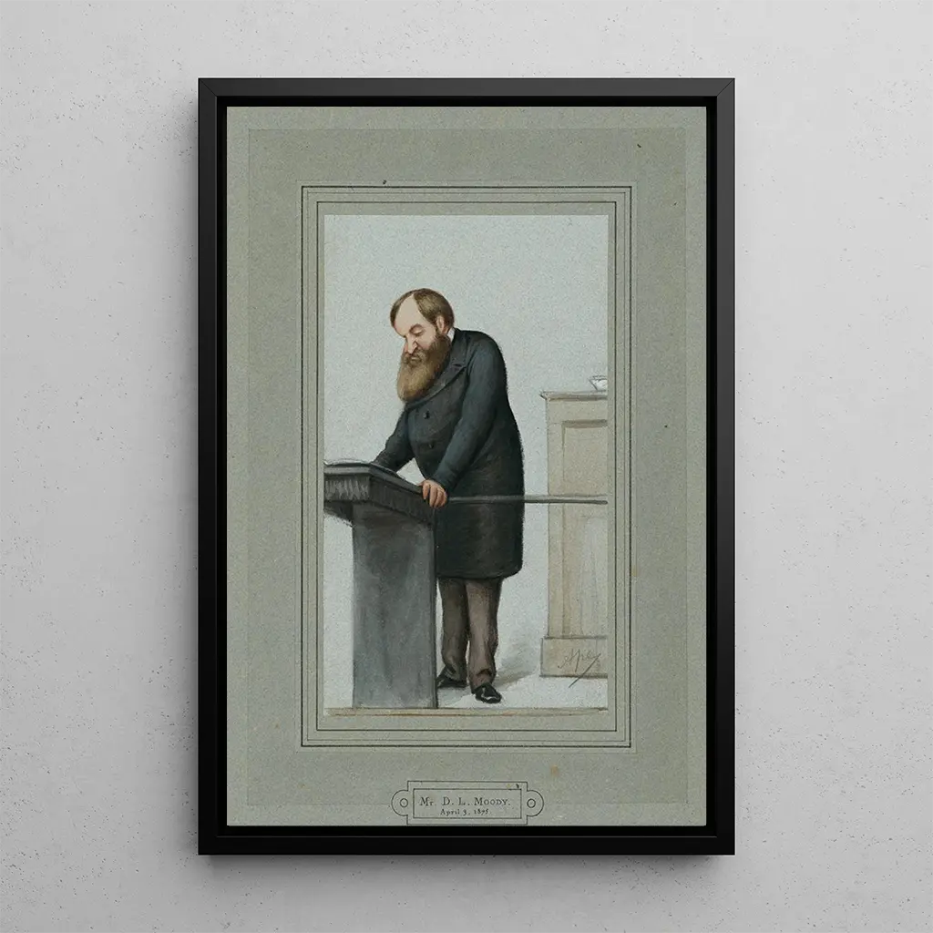 W obrazie "Dwight Lyman Moody" Carlo Pellegrini przedstawia z siłą słynnego amerykańskiego kaznodzieję, uchwycając jego intensywność i pasję do wiary. Dzieło wyróżnia się odważnym użyciem cieni i świateł, które podkreślają zdecydowane rysy Moody'ego. Bogate i głębokie kolory, łączące odcienie brązu i czerni, wzmacniają charyzmatyczną aurę postaci. Dynamiczna postura Moody'ego, z ekspresywnym gestem, nawiązuje do jego gorliwego zaangażowania w kaznodziejstwo, czyniąc ten druk artystyczny prawdziwym hołdem dla jego duchowego dziedzictwa.