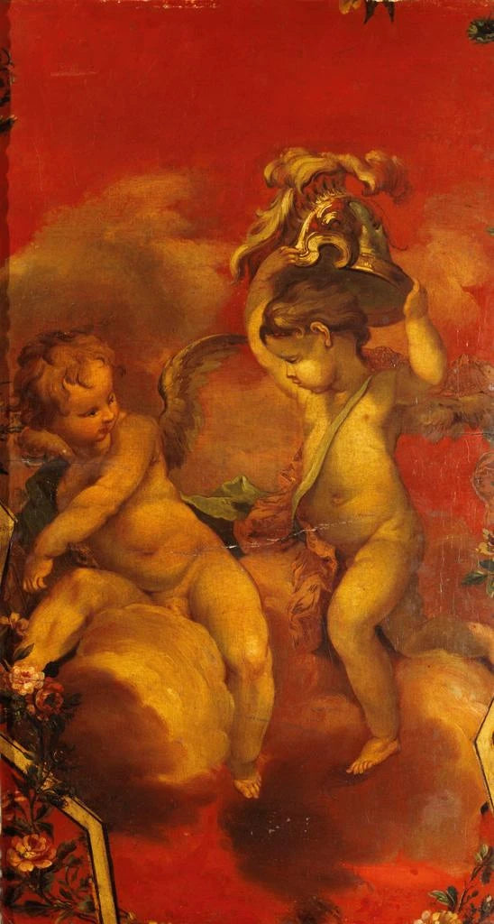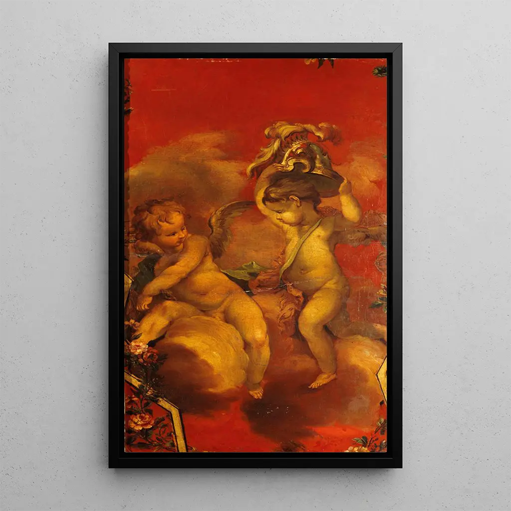 Druk artystyczny | Dwóch geniuszy z hełmem - Szkoła Francuska