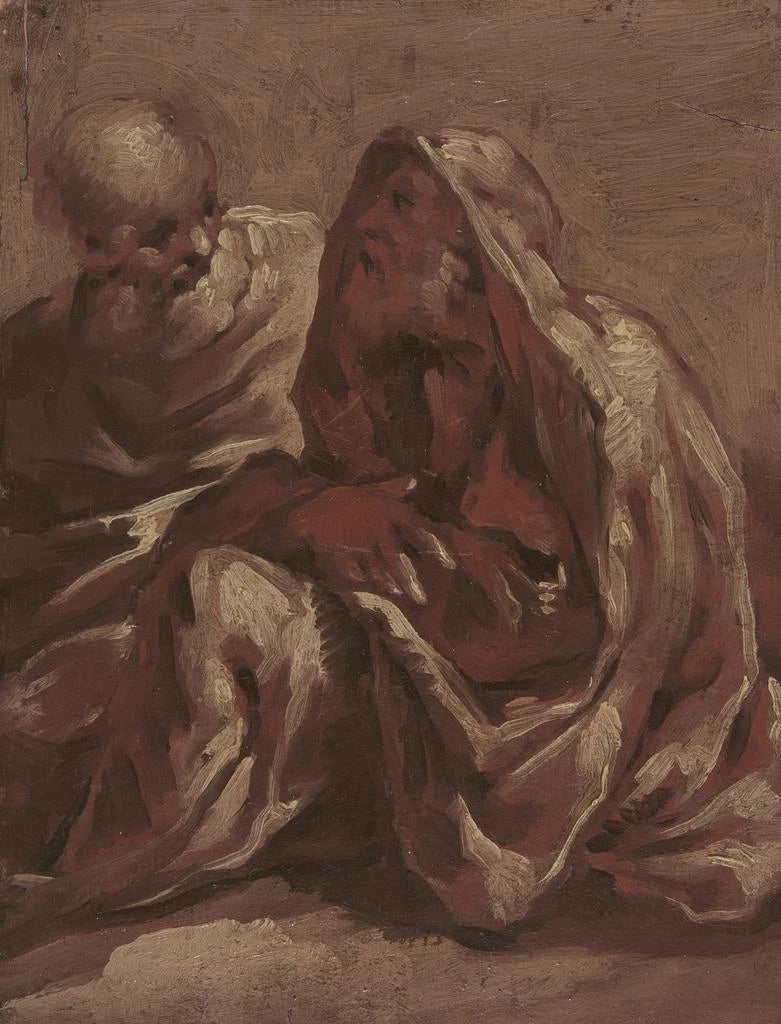 Dwa brodate męskie postacie siedzące - Sigismondo Caula