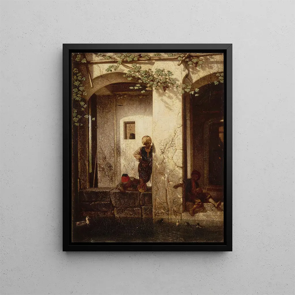 Reproduction Enfants turcs auprès d'une fontaine - Alexandre-Gabriel Decamps – Wprowadzenie fascynujące L'œuvre "Enfants turcs auprès d'une fontaine" d'Alexandre-Gabriel Decamps transporte le spectateur dans un univers riche en couleurs et en émotions. Peinte au XIXe siècle, cette scène vivante dépeint des enfants turcs jouant près d'une fontaine, capturant ainsi l'insouciance de l'enfance au sein d'un cadre oriental enchanteur. La lumière qui baigne la toile, les détails minutieux des costumes et l'expression des visages des enfants invitent à une contemplation prolongée. Cette œuvre, emblématique du style orientaliste, évoque non seulement un moment fugace de joie, mais également un dialogue entre cultures, où l'Occident s'émerveille de l'Orient. Styl i wyjątkowość dzieła Styl Decamps wyróżnia się odważnym użyciem światła i kolorów, tworząc żywą i dynamiczną atmosferę. W "Enfants turcs auprès d'une fontaine" ciepłe i jaskrawe odcienie harmonijnie się łączą, podczas gdy delikatne cienie dodają kompozycji głębi. Dzieci, zamrożone w naturalnych pozach, zdają się niemal ożywać pod pędzlem artysty. Fontanna, centralny element sceny, nie jest tylko dodatkiem, lecz symbolem życia i świeżości, wzmacniającym ideę miejsca zabawy i szczęścia. To dzieło, zarówno realistyczne, jak i poetyckie, doskonale ilustruje zdolność Decamps do łączenia techniki malarskiej z wrażliwością artystyczną. Artysta i jego wpływ Alexandre-Gabriel Decamps, wybitna postać ruchu orientalisty, potrafił uchwycić istotę kultur, które eksplorował podczas swoich podróży. Pod wpływem artystów takich jak Eugène Delacroix i Théodore Chassériau, Decamps rozwinął unikalny styl, łączący precyzję detalu z ekspresją. Jego fascynacja Orientem, którą odkrył podczas podróży, odzwierciedla się w jego dziełach, gdzie przedstawia sceny z codziennego życia, pejzaże i postacie z dużą autentycznością. Jego podejście nie tylko wzbogaciło panoramę artystyczną jego epoki, ale także otworzyło drogę innym artystom pragnącym eksplorować podobne tematy.