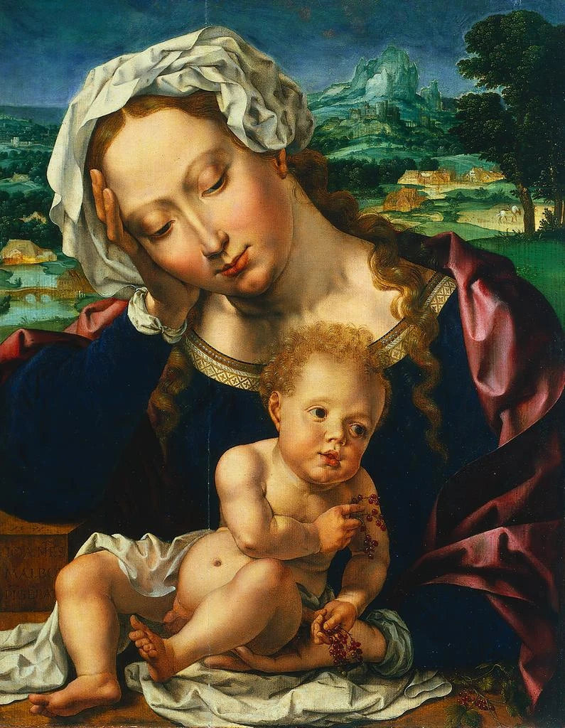 Dziewica z Dzieciątkiem na tle krajobrazu - Jan Gossaert