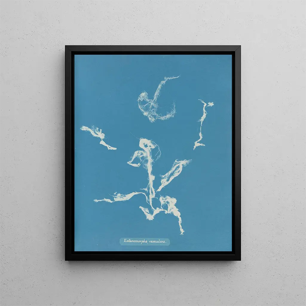Dzieło Atkins wyróżnia się nowatorskim podejściem do fotografii, medium jeszcze młodym w jej czasach. Używając techniki cyjanotypii, udało jej się stworzyć odciski głębokiego niebieskiego odcienia, które przywołują morze i niebo. Przedstawienie Enteromorpha ramulosa, z jej delikatnymi filamentami i subtelnymi odcieniami, doskonale ilustruje zdolność Atkins do łączenia sztuki i nauki. Każdy szczegół tego glona jest wyeksponowany, ukazując jego złożoną strukturę i wewnętrzne piękno. Ten wybór tematu, zarówno prosty, jak i fascynujący, świadczy o głębokim szacunku dla natury i chęci jej dokumentowania z rygorem. Czysta kompozycja i brak zbędnych elementów pozwalają dziełu oddychać, zapewniając widzowi unikalne doświadczenie kontemplacyjne.