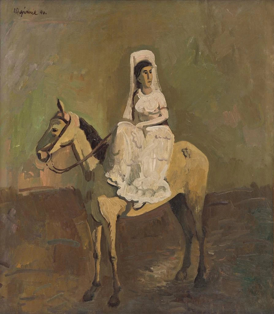 Styl Cypriana Majernika charakteryzuje się podejściem zarówno realistycznym, jak i ekspresyjnym. W "Jeździeckim" artysta używa technik malarskich, które podkreślają fakturę grzyw i siłę mięśni koni, jednocześnie grając światłem, aby tworzyć dramatyczne cienie. Ta interakcja między światłem a cieniem ożywia dzieło, sprawiając, że każdy ruch jest wyczuwalny. Dobór kolorów, często bogatych i nasyconych, dodaje niemal dotykowej wymiarowości przedstawieniu, pozwalając widzowi poczuć energię emanującą ze sceny. Majernik nie ogranicza się do przedstawienia prostego pejzażu jeździeckiego; tworzy wizualną narrację, w której każdy szczegół ma znaczenie, a każdy koń wydaje się mieć swoją historię do opowiedzenia. Ta stylistyczna wyjątkowość sprawia, że "Jeździeckie" to dzieło, które przekracza granice czasu i mody, wpisując się w tradycję artystyczną, jednocześnie wyrażając unikalny głos.