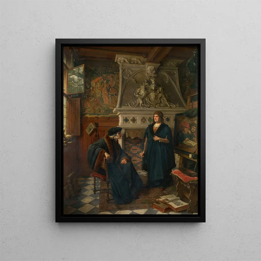 W rozległym panoramie historii sztuki niektóre dzieła wyróżniają się swoją zdolnością do uchwycenia historycznych momentów, jednocześnie ukazując niuanse ludzkiej kondycji. Druk artystyczny Érasme et Quinten Massijs - Eugène Siberdt jest tego doskonałym przykładem. Ten obraz, który ukazuje spotkanie słynnego humanisty Érasme i malarza Quinten Massijs, odzwierciedla epokę, w której sztuka i myśl splatały się w sposób nieodłączny. Siberdt, dzięki swojej technicznej biegłości i wrażliwości, potrafi stworzyć atmosferę, w której widz jest zaproszony do zagłębienia się w głębię intelektualnych wymian swojego czasu. To dzieło nie ogranicza się do przedstawienia dwóch ikonicznych postaci, lecz także przywołuje dialog między sztuką a filozofią, wymianę, która wciąż rezonuje dzisiaj.