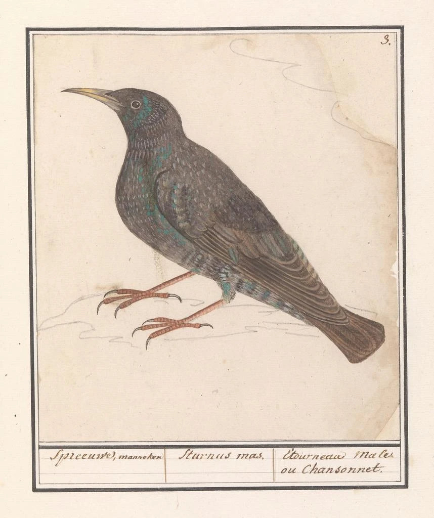 Druk artystyczny | Sroka zwyczajna Sturnus vulgaris - Anselmus Botius de Boodt