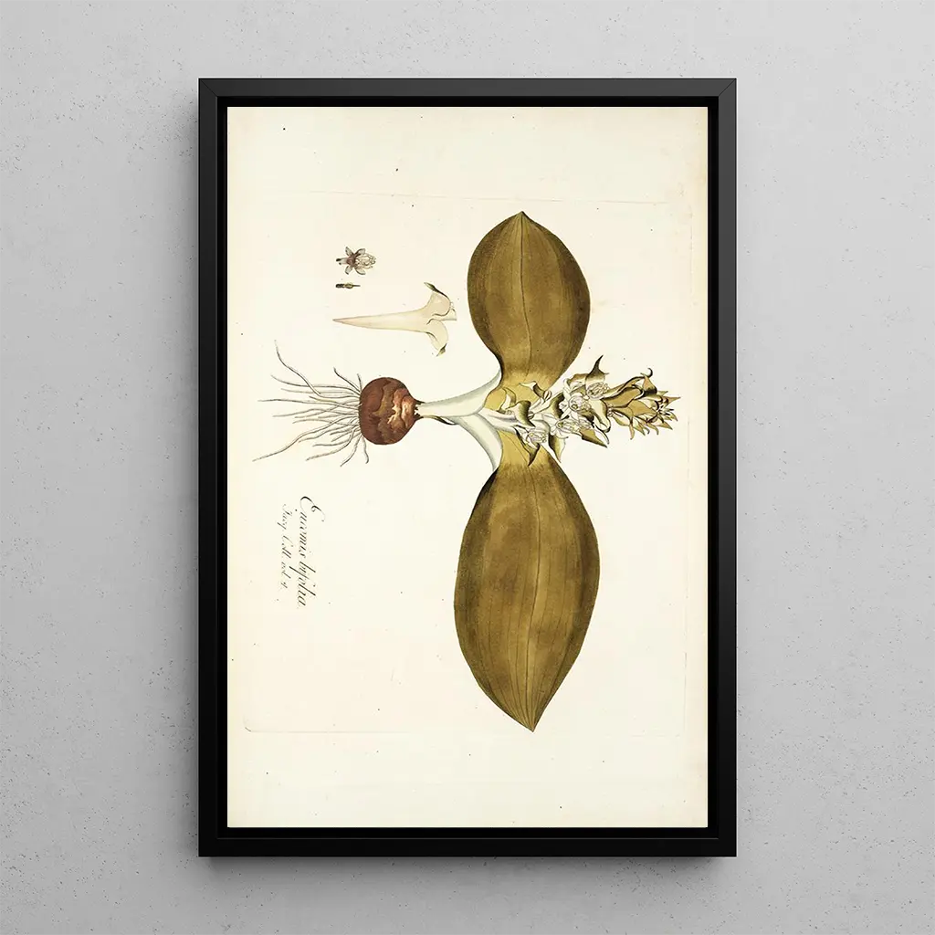 "Eucomis bifolia" autorstwa Nikolausa Josefa Freiherr von Jacquin to żywe dzieło, które podkreśla unikalne piękno tej rośliny. Jaskrawe kolory, od intensywnej zieleni po głęboki fiolet, łączą się, tworząc dynamiczną i porywającą kompozycję. Technika akwareli, opanowana przez Jacquina, pozwala oddać delikatne tekstury liści i kwiatów, jednocześnie nadając całości niemal namacalną żywość. To dzieło jest prawdziwą zachętą do odkrywania bogactwa flory, oferując jednocześnie bogate i immersyjne doświadczenie wizualne.