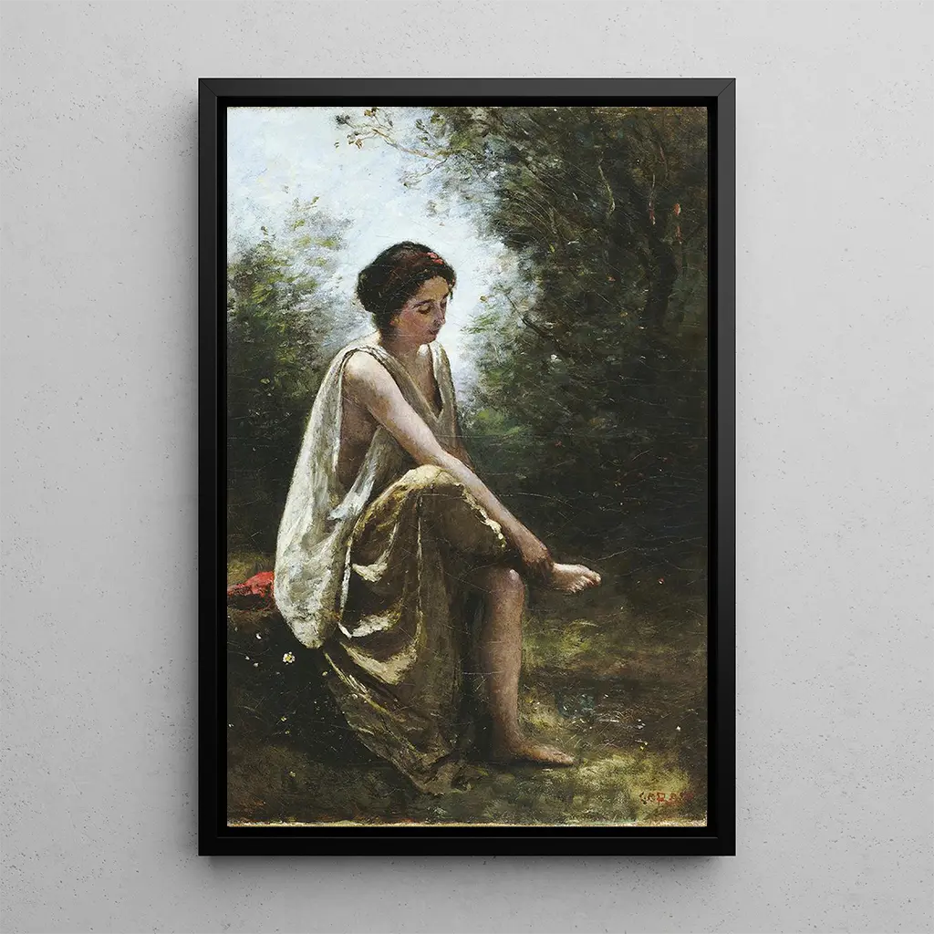 Artiste majeur du XIXe siècle, Corot a su naviguer entre le romantisme et le réalisme, influençant de nombreux peintres de son époque. Sa carrière, débutée dans les années 1820, a été marquée par des voyages en Italie, où il a puisé son inspiration dans les paysages et la lumière. Corot a également joué un rôle dans le développement de l'impressionnisme, en mettant l'accent sur la capture des effets de lumière et d'atmosphère. "Eurydice blessée" témoigne de son talent à allier technique et émotion, faisant de lui un précurseur dans l'art moderne.