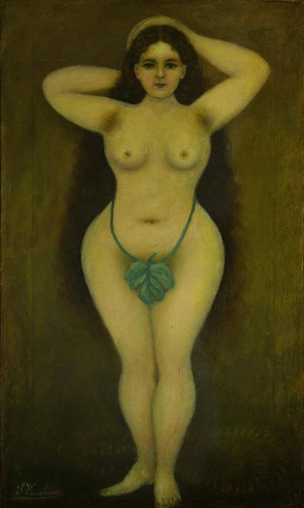 Dans la toile "Ève au paradis", Mariano Silva Vandeira nous transporte dans un jardin d'Éden vibrant de couleurs et de lumière. La composition est richement détaillée, avec des teintes verdoyantes qui évoquent la fraîcheur de la nature. Les formes organiques des arbres et des fleurs semblent danser autour de la figure centrale d'Ève, qui incarne la beauté et l'innocence. La technique de Vandeira, mêlant le réalisme à une touche de romantisme, crée une atmosphère de sérénité et de mystère, invitant le spectateur à contempler la pureté de la création.