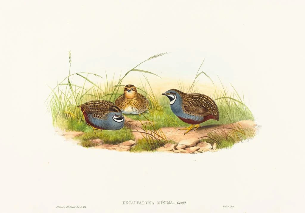 Ta reprodukcja druk artystyczny Excalftoria minima, dzieło Johna Goulda, przenosi nas w świat pełen żywych kolorów i szczegółów. Artysta zdołał uchwycić istotę tego rzadkiego ptaka, ukazując mieniące się upierzenie, które wydaje się niemal żywe. Technika litografii, używana z mistrzostwem, nadaje obrazowi głębię i teksturę, tworząc atmosferę zarówno realistyczną, jak i poetycką. Każdy pociągnięcie pędzla świadczy o wnikliwej obserwacji, zachęcając widza do docenienia delikatnego piękna natury.