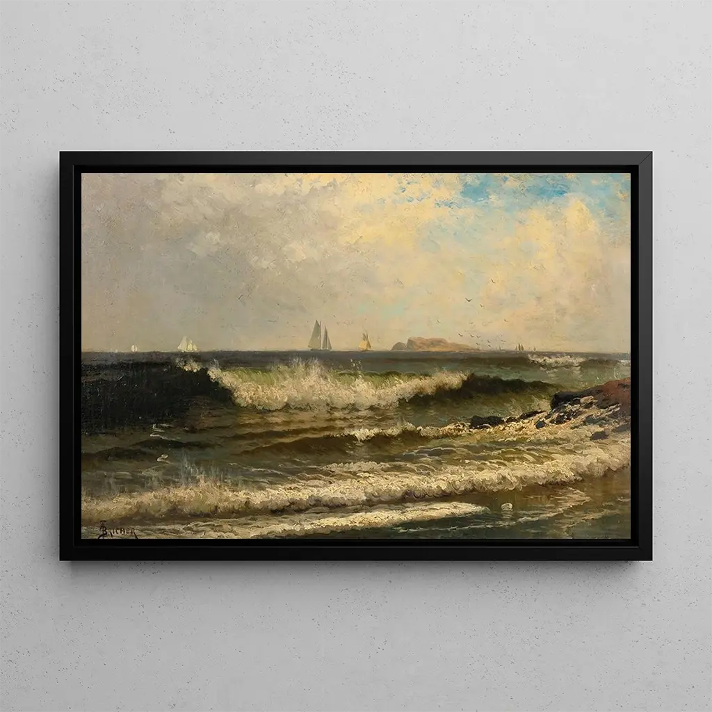 Alfred Thompson Bricher, actif au XIXe siècle, est reconnu pour ses paysages marins qui capturent l'essence même de la mer. Influencé par le mouvement impressionniste, il a su développer un style unique, alliant précision et expressivité. Ses œuvres témoignent d'une profonde admiration pour la nature, souvent inspirées par ses voyages le long des côtes américaines. Bricher a également été membre de l'American Watercolor Society, ce qui témoigne de son importance dans le monde de l'art maritime et de son héritage durable.