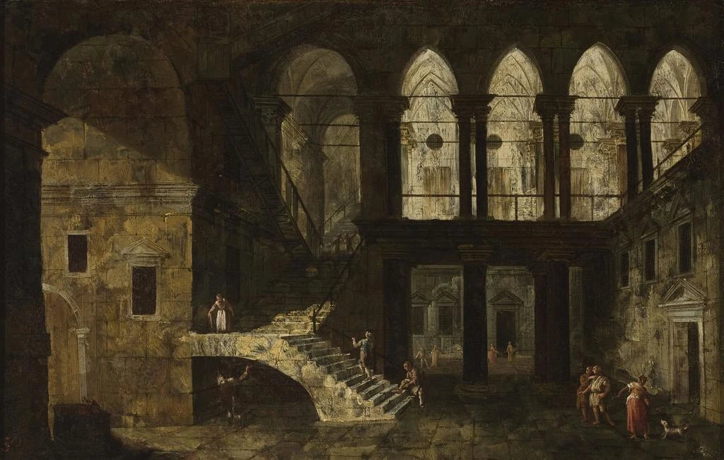 Fantazja architektoniczna z dziedzińcem pałacu - Michele Marieschi