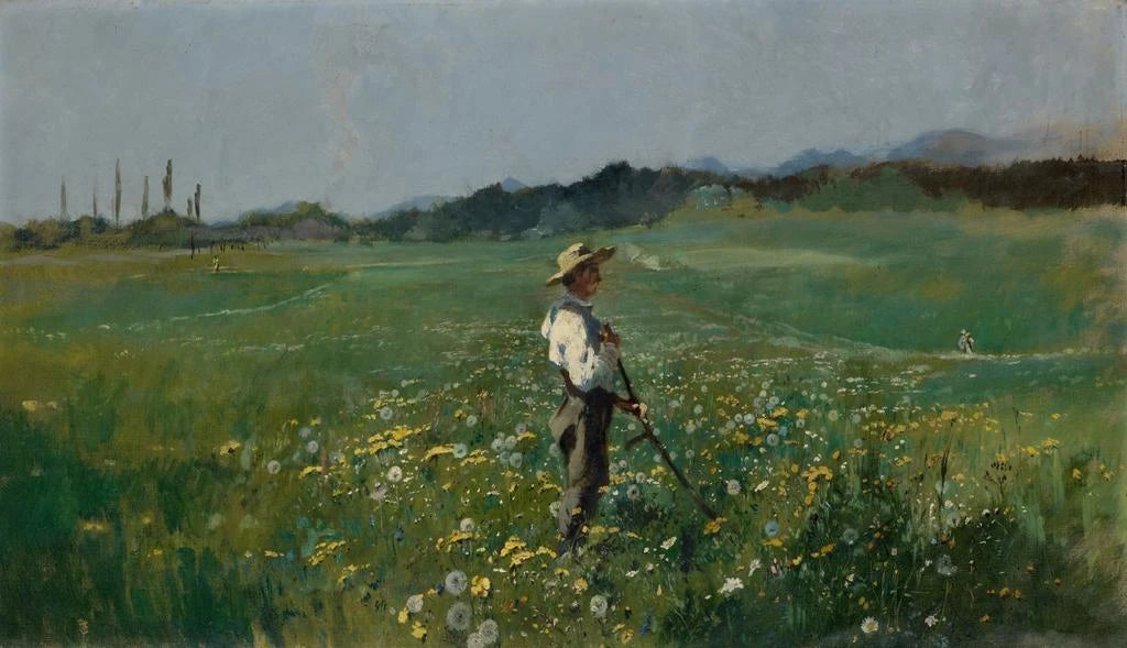 Frank Buchser, szwajcarski malarz XIX wieku, jest znany z przedstawień życia wiejskiego i pejzaży. Pod wpływem realizmu, wpisuje się w okres, gdy sztuka zwracała się ku bardziej autentycznym i bliskim codzienności tematom. Jego dzieła świadczą o szczególnej wrażliwości na sceny życia wiejskiego, często naznaczone nostalgią za świat zmieniający się. Buchser był również podróżnikiem, co pozwoliło mu wprowadzić różnorodne wpływy do swojej sztuki, wzbogacając tym samym swoje podejście malarskie. Jego prace pozostają cennym świadectwem relacji między człowiekiem a naturą w czasach, gdy industrializacja zaczynała przekształcać pejzaże.