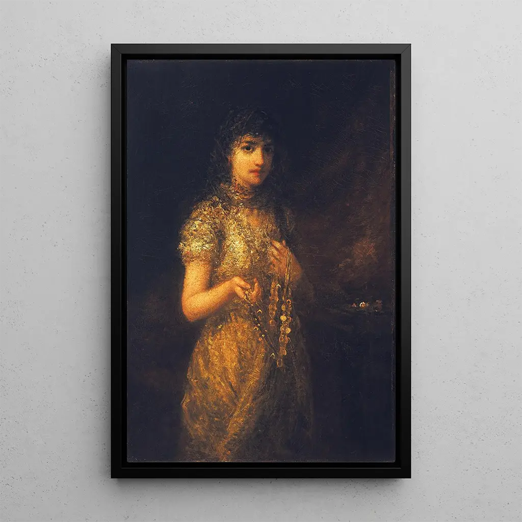 Druk artystyczny Fedalma, ikoniczne dzieło George'a Fullera, wywołuje delikatność i zmysłowość, które przyciągają wzrok. Na tym płótnie ciepłe kolory łączą się z subtelnymi odcieniami, tworząc intymną atmosferę. Technika Fullera, łącząca realizm z impresjonistycznym akcentem, pozwala uchwycić niuanse światła na skórze modelki. Gracja postawy Fedalma oraz szczegółowe detale jej stroju świadczą o wyjątkowym kunszcie. To dzieło zachęca do głębokiej kontemplacji, ukazując efemeryczną piękność kobiecości.