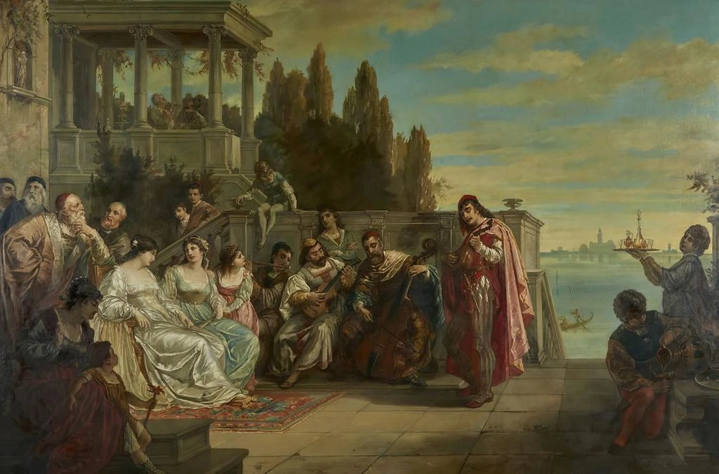 Augusto Wolf, peintre du XIXe siècle, est connu pour ses représentations de la vie vénitienne, mêlant réalisme et romantisme. Son œuvre s'inscrit dans une période où l'artiste cherche à capturer l'essence des traditions locales tout en explorant les thèmes de la fête et de la convivialité. Influencé par les couleurs vibrantes et les lumières de Venise, Wolf parvient à créer des tableaux qui célèbrent la culture italienne. Son travail est un hommage à la beauté et à la richesse des traditions, faisant de lui un artiste incontournable de son époque.