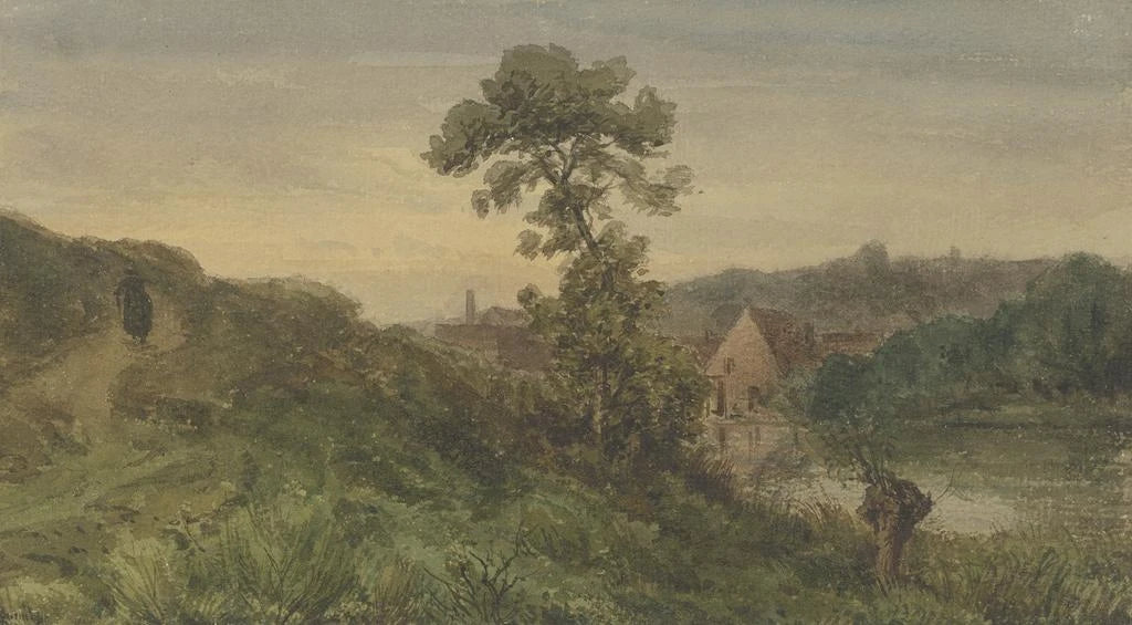 La druk artystyczny Fluufer, à gauche un chemin de campagne, de Peter Burnitz, évoque une scène paisible et bucolique. Les teintes douces de vert et de brun, mêlées à des touches de lumière dorée, créent une atmosphère chaleureuse et accueillante. La technique de peinture à l'huile utilisée par Burnitz permet de rendre les textures des feuillages et des chemins avec une grande délicatesse. Ce tableau invite à la contemplation, à la flânerie sur les routes de campagne, où chaque détail raconte une histoire de nature et de tranquillité.