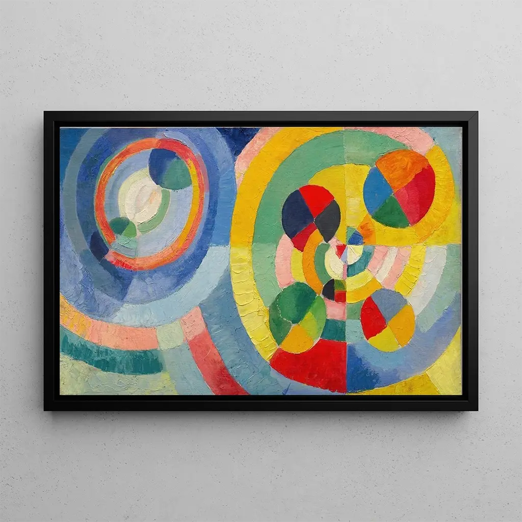 Druk artystyczny dzieła "Formy okrągłe" autorstwa Roberta Delaunaya to prawdziwe święto dynamiki wizualnej. Kolorowe koła przeplatają się i nakładają, tworząc wrażenie nieustającego ruchu, które przyciąga wzrok. Żywe i odważne kolory, typowe dla stylu orfickiego, wywołują energię wibrującą, niemal muzyczną. Ta płótno zachęca do aktywnej kontemplacji, gdzie każdy spojrzenie odsłania nowe odcienie i interakcje między formami. Delaunay zdołał uchwycić istotę nowoczesności poprzez to dzieło, czyniąc z każdego elementu symbol życia miejskiego w pulsie.