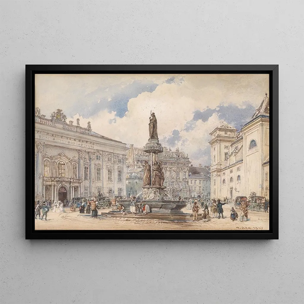 Ta druk artystyczny Freyung z fontanną Austrii przenosi nas do spokojnego świata, gdzie natura i architektura harmonijnie się spotykają. Delikatne kolory i drobiazgowe detale na płótnie wywołują atmosferę ciszy, zachęcając widza do zatrzymania się i podziwiania piękna krajobrazu. Światło odgrywa kluczową rolę w tym dziele, subtelnie oświetlając elementy sceny, podczas gdy fontanna, na środku, przyciąga wzrok i symbolizuje życie. Technika Rudolfa von Alta, z jego delikatnymi pociągnięciami pędzla, daje wrażenie ruchu i płynności, ożywiając każdy element.