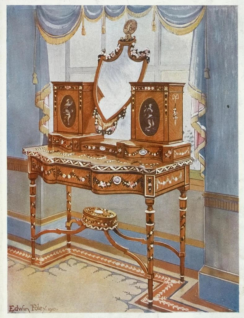 Druk artystyczny | Toaletka z drewna satynowego z medalionami - Edwin Foley