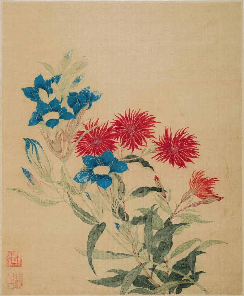 Niebieska gentiana i czerwony lychnis - Ma Yuanyu