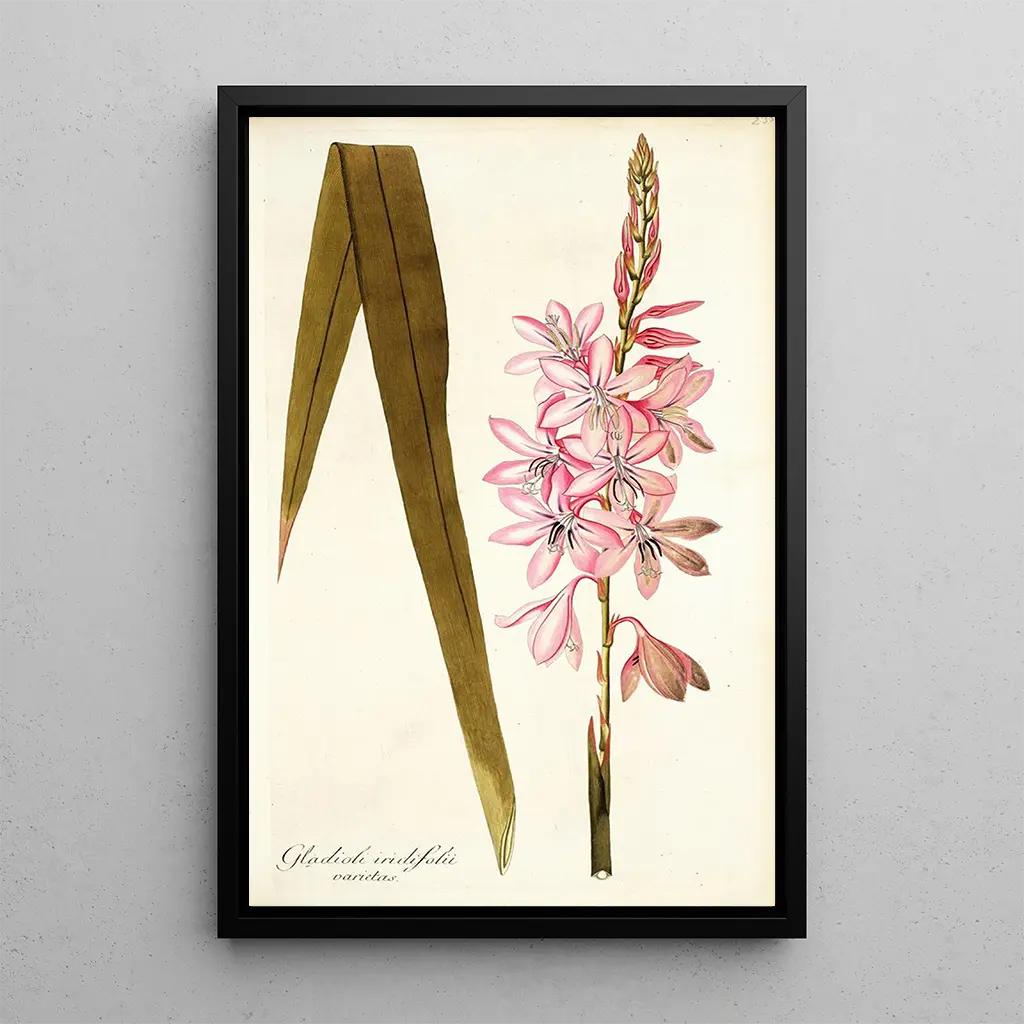Druk artystyczny Gladioli iridifolii przenosi nas do żywego świata, w którym natura wyraża się z blaskiem. Żywe odcienie kwiatów, od fioletu po róż, harmonijnie się łączą, tworząc fascynującą kompozycję. Technika akwareli używana przez artystę ożywia każdy płatek, oferując wrażenie lekkości i delikatności. Atmosfera emanująca z tego obrazu przypomina spokojny spacer po bujnym ogrodzie, gdzie każdy kwiat zdaje się tańczyć pod muśnięciem wiatru. Ten obraz to prawdziwa hołd dla efemerycznej piękności natury.