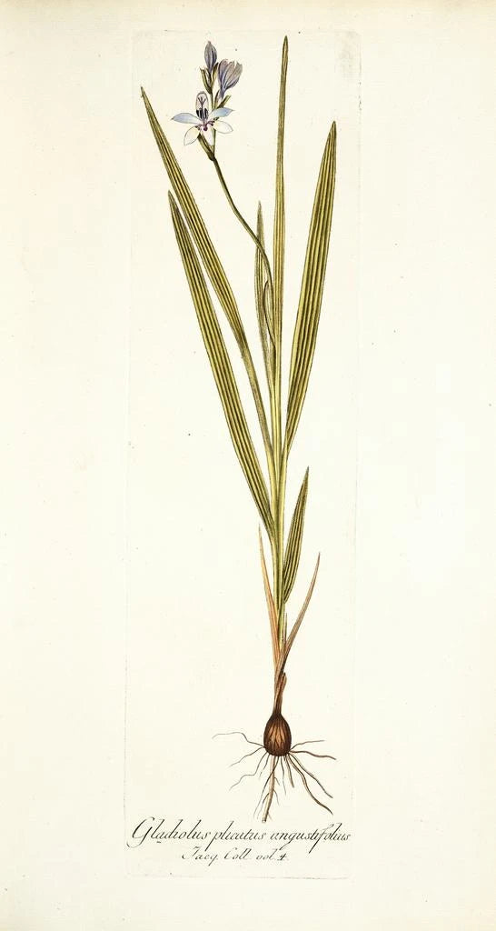 Nikolaus Joseph Freiherr von Jacquin, figure emblématique du XVIIIe siècle, a su allier sa passion pour la botanique et son talent artistique. Ses études approfondies et ses voyages lui ont permis de découvrir des espèces végétales rares, qu'il a ensuite immortalisées dans ses œuvres. Gladiolus plicatus angustifolius est un exemple parfait de son approche méticuleuse, où chaque détail est observé avec soin. En tant que botaniste, Jacquin a également contribué à l'avancement des connaissances sur les plantes, faisant de lui un précurseur dans le domaine de l'illustration scientifique.