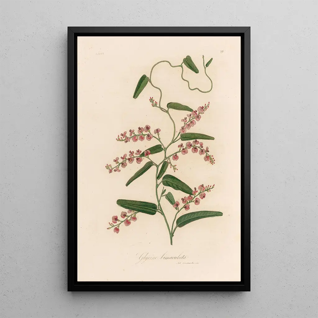 La druk artystyczny Glycine bimaculata nous transporte dans un univers de couleurs éclatantes et de formes délicates. Les nuances de violet et de blanc s’entrelacent avec grâce, évoquant une danse légère au gré du vent. La technique de l’aquarelle, utilisée par Gaetano Savi, donne vie à chaque pétale, créant une atmosphère à la fois douce et vibrante. Ce tableau, empreint de poésie, invite à la contemplation et à l’émerveillement face à la beauté éphémère de la nature.