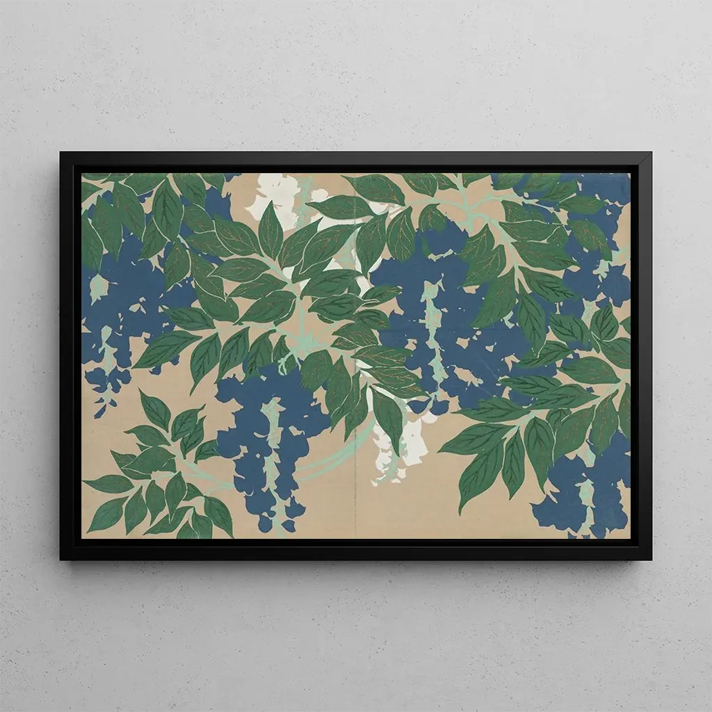 Druk artystyczny Glycine Fuji autorstwa Kamisaka Sekki to dzieło, które przywołuje lekkość i efemeryczną piękność kwiatów. Na tej płótnie kiście glicynii splatają się z gracją, tworząc urzekający spektakl wizualny. Pastelowe kolory, od delikatnego fioletu po czystą biel, harmonijnie się łączą, a technika akwareli nadaje całości miękkości. Atmosfera emanująca z tego dzieła jest jednocześnie spokojna i poetycka, zapraszając widza do zanurzenia się w kwiatowym świecie, gdzie czas zdaje się zatrzymać.