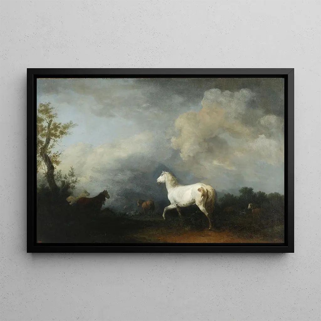 Francesco Giuseppe Casanova, działający w XVIII wieku, jest znany z dzieł podkreślających piękno zwierząt, zwłaszcza koni. Pod wpływem stylu barokowego, jego styl charakteryzuje się staranną dbałością o szczegóły i zdolnością do uchwycenia samej istoty swoich tematów. Casanova zdołał wybić się w świecie sztuki dzięki głębokiemu zrozumieniu formy i ruchu, co pozwoliło mu tworzyć dynamiczne i żywe kompozycje. Jego prace odzwierciedlają epokę, w której natura i realistyczne przedstawienie zwierząt były centralnym punktem zainteresowań artystycznych.