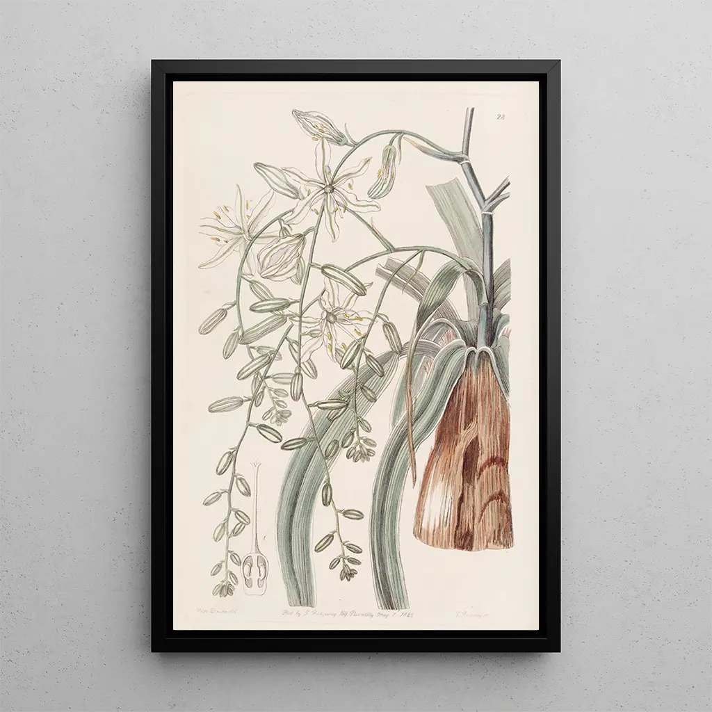 Étoile de Bethléem traînante : symbol światła i nadziei L’Étoile de Bethléem traînante, zilustrowana przez Sydenham Edwards, przywołuje delikatne i promienne piękno. Ze swoimi jaskrawymi białymi płatkami i akcentami zieleni, to dzieło przyciąga wzrok i rozświetla przestrzeń. Technika akwareli pozwala oddać przezroczystość kwiatów, tworząc łagodną i marzycielską atmosferę. Każdy szczegół jest starannie dopracowany, ukazując grację tej ikonicznej rośliny, symbolu odrodzenia i nadziei, która zachęca do kontemplacji i spokoju. Sydenham Edwards : mistrz ilustracji botanicznej Sydenham Edwards, wybitna postać początku XIX wieku, umiał połączyć sztukę i naukę w swoich ilustracjach botanicznych. Jego prace były inspirowane romantyzmem, podkreślając naturalne piękno przy jednoczesnym szacunku dla precyzji naukowej. Edwards przyczynił się do dokumentacji wielu gatunków roślin, odgrywając kluczową rolę w rozwoju druk artystyczny botaniczny. Jego dzieła, często publikowane w traktatach botanicznych, zwiększały świadomość społeczeństwa o bogactwie flory, czyniąc z niego szanowanego i podziwianego artystę. Dekoracyjna reprodukcja o wielu zaletach Reprodukcja druk artystyczny Étoile de Bethléem traînante to uroczy dodatek do każdego wnętrza, czy to w salonie, biurze czy sypialni. Jakość druku zapewnia wierne odwzorowanie kolorów i szczegółów oryginalnego dzieła, wprowadzając odświeżenie i jasność do Twojej przestrzeni. To obraz, zarazem elegancki i uspokajający, zachęca do marzeń i kontemplacji, przemieniając Twoje wnętrze w azyl spokoju i naturalnego piękna. Wybierając tę reprodukcję, wzbogacasz swoją dekorację, jednocześnie celebrując sztukę botaniczną.