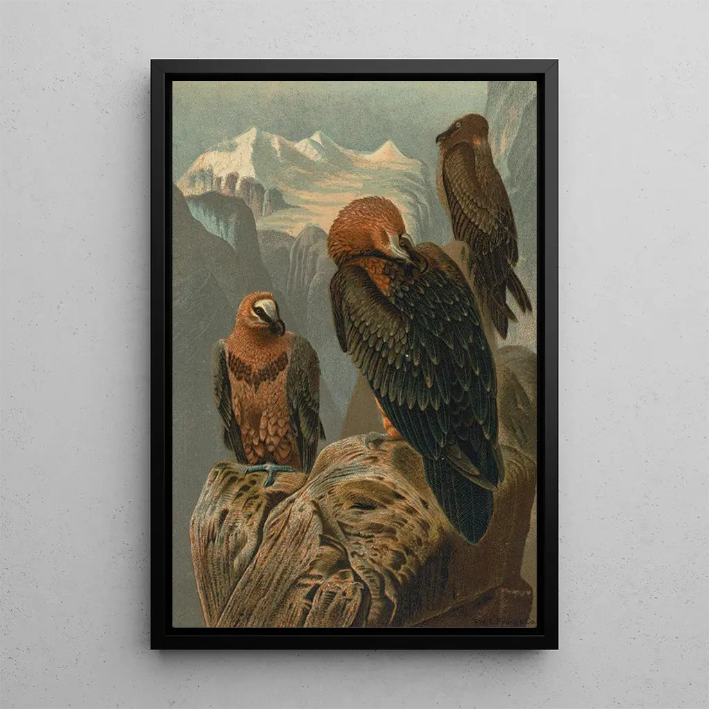 Druk artystyczny Gypaète barbu autorstwa Johna George'a Wooda przenosi nas w wysokie partie gór, gdzie ten majestatyczny ptak unosi się z gracją. Ciepłe odcienie jego upierzenia, łączące brązy i pomarańcze, wyróżniają się na tle niebieskiego nieba. Technika Wooda, łącząca realizm i poezję, oddaje nie tylko fizyczny wygląd tego ptaka, ale także jego imponujący charakter i majestat. Każde pióro zdaje się drgać pod światłem, tworząc dynamiczną atmosferę, która wywołuje uczucie wolności i siły dzikiej natury.