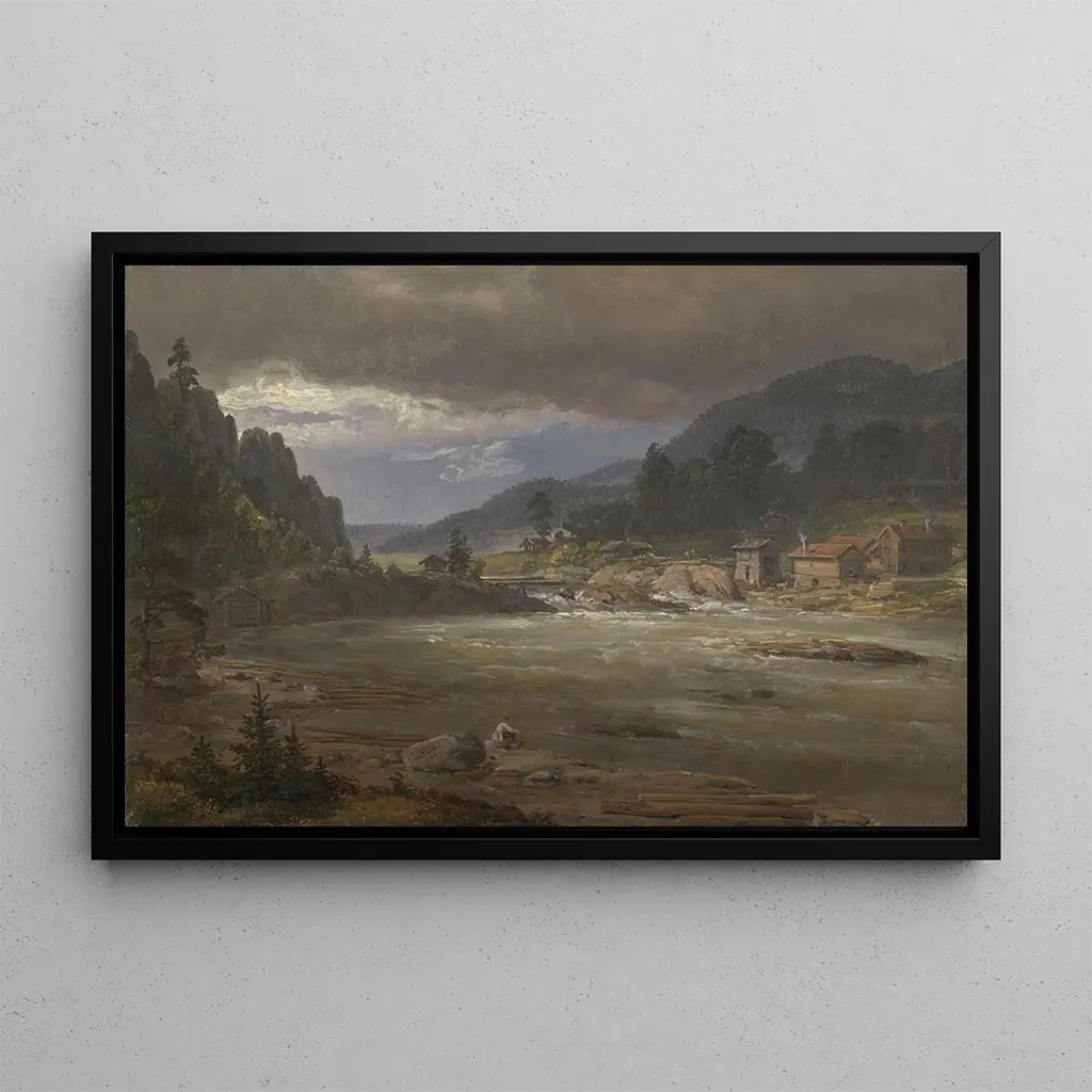 Johan Christian Dahl jest uważany za jednego z pierwszych malarzy pejzażu w Norwegii, odgrywając kluczową rolę w rozwoju romantyzmu skandynawskiego w XIX wieku. Wykształcony w Dreźnie, czerpał inspirację od wielkich niemieckich mistrzów, jednocześnie rozwijając własny styl, który celebruje norweskie krajobrazy. Dahl potrafił uchwycić esencję dzikiej natury, wpływając na wielu współczesnych i przyszłych artystów. "Hellefossen niedaleko Hokksund" jest doskonałym przykładem jego umiejętności przekładania majestatu norweskich pejzaży na druk artystyczny, jednocześnie wplatając elementy europejskiego romantyzmu.