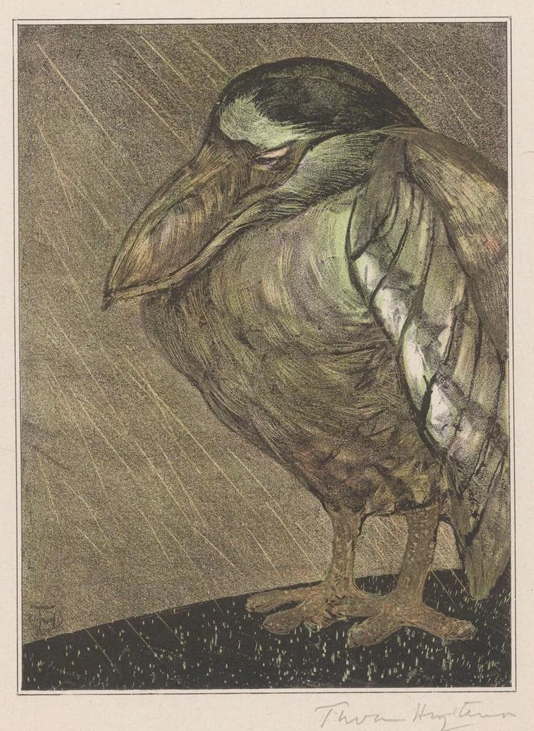 Obraz Heron z dzióbkiem w łodzi pod deszczem - Theo van Hoytema | Druk artystyczny