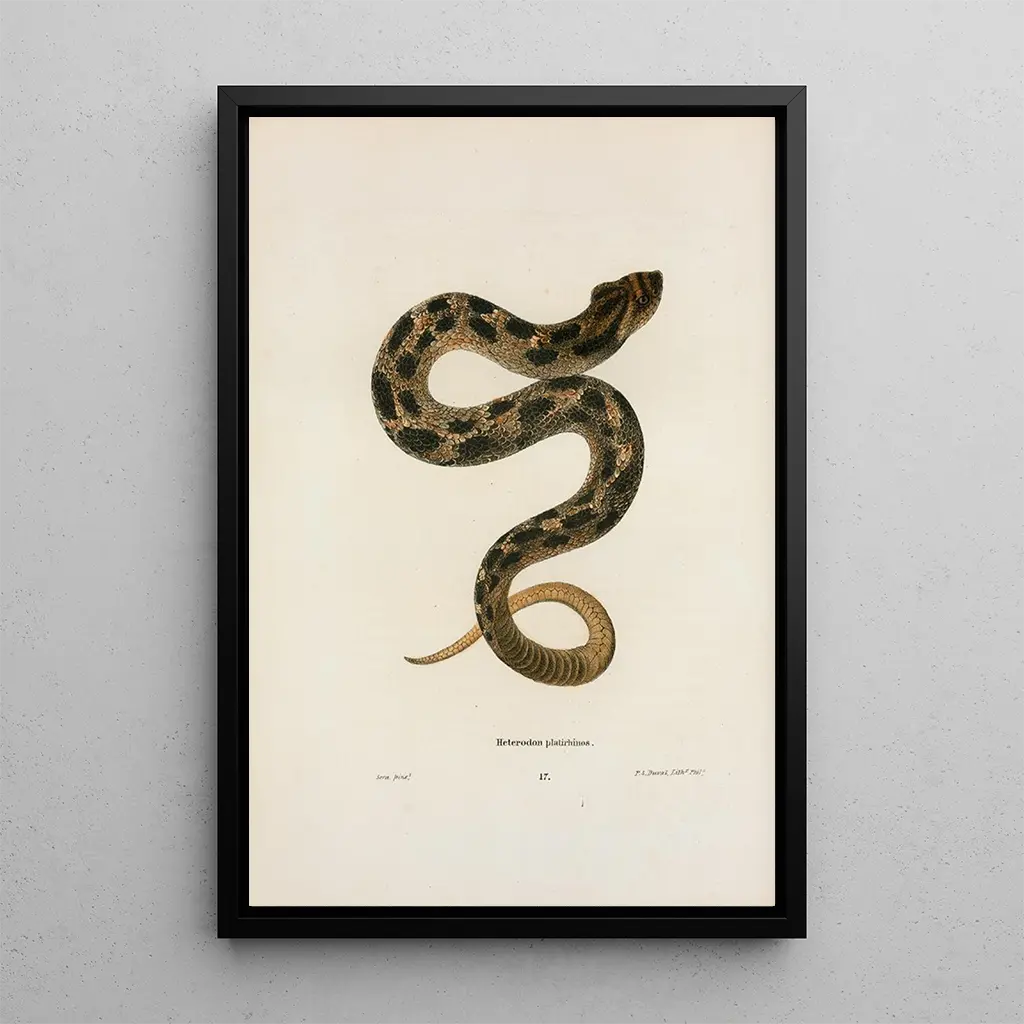 La reproduction de l'Heterodon à nez plat est un ajout décoratif qui enrichit tout espace, que ce soit dans un bureau, un salon ou une chambre. Sa qualité d'impression et son authenticité en font un tableau qui attire l'attention tout en apportant une touche de nature à votre intérieur. Ce choix esthétique ne se limite pas à l'art, il évoque également une réflexion sur la biodiversité et la nécessité de préserver notre environnement. En intégrant cette toile dans votre décoration, vous créez un espace inspirant qui célèbre la beauté du monde naturel.