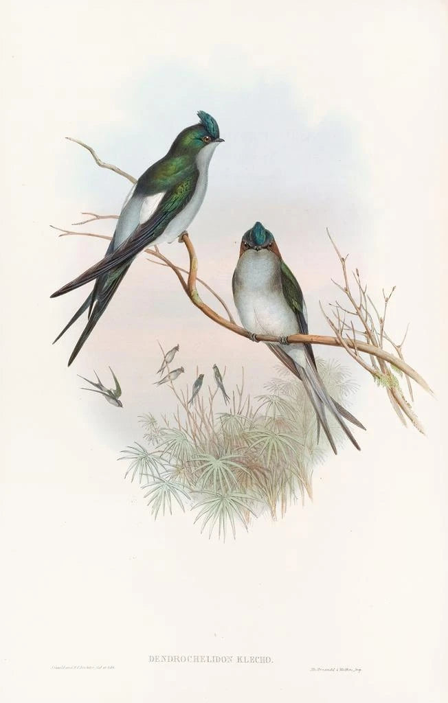 John Gould, ikona XIX wieku, zdołał połączyć sztukę i naukę poprzez swoje ilustracje ornitologiczne. Jako ornitolog, poświęcił swoje życie badaniu ptaków, podróżując po całym świecie, aby dokumentować rzadkie i mało znane gatunki. Jego skrupulatne podejście i unikalny styl artystyczny pozwoliły szerokiej publiczności poznać bogactwo ptasiego świata. reproduction Hirondelle-arbre Klecho jest doskonałym przykładem jego twórczości, ilustrującym jego oddanie wiernemu odwzorowaniu ptaków i trwały wpływ na ornitologię.