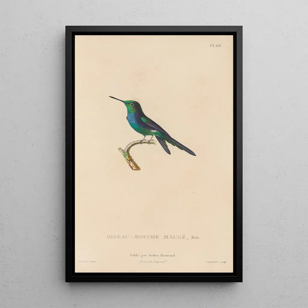 Druk artystyczny Histoire naturelle des oiseaux-mouches Pl69 przenosi nas w pulsujący świat, gdzie lekkość ptaków-muchy łączy się z paletą jaskrawych barw. Każdy szczegół jest starannie oddany, od delikatnych piór po migotliwe odcienie, które zdają się niemal drgać w świetle. Technika druku artystycznego używana przez René Primevère Lesson pozwala uchwycić nie tylko fizyczny wygląd tych fascynujących stworzeń, ale także radosną atmosferę ich naturalnego środowiska. To dzieło zachęca do uważnej kontemplacji, gdzie każdy spojrzenie odsłania nową stronę piękna ornitologicznego.