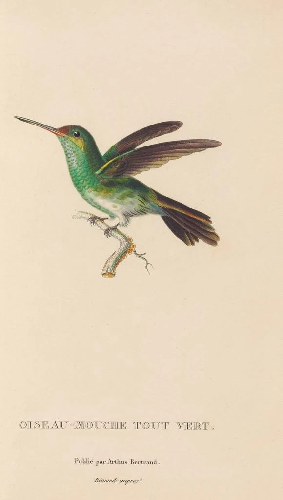 René Primevère Lesson, actif au XIXe siècle, est reconnu pour ses contributions significatives à l'ornithologie et à l'art naturaliste. Sa passion pour les oiseaux et son désir de les représenter fidèlement l'ont conduit à créer des œuvres emblématiques, dont "Histoire naturelle des oiseaux-mouches Pl76". Influencé par les explorations scientifiques de son temps, Lesson a su allier précision et esthétique, rendant hommage à la beauté de la nature. En tant que membre de l'Institut de France, il a laissé un héritage durable, inspirant tant les scientifiques que les artistes à travers ses illustrations détaillées et poétiques.