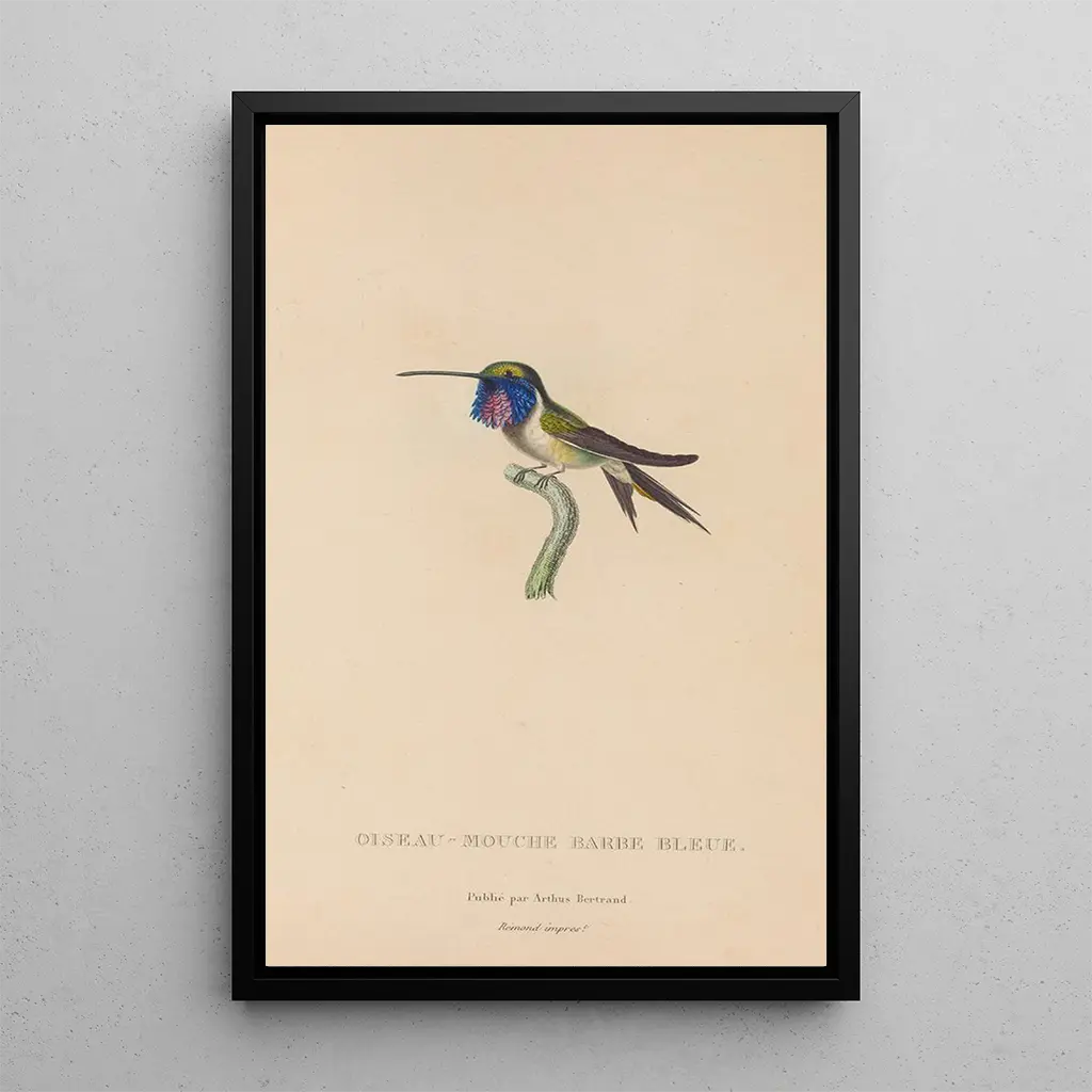 Druk artystyczny Histoire naturelle des oiseaux-mouches Pl05 przenosi nas do kolorowego i fascynującego świata. Żywe odcienie upierzenia, od głębokich błękitów po jaskrawe czerwienie, odzwierciedlają bogactwo bioróżnorodności ptaków. Każdy ptak, przedstawiony z precyzją, zdaje się ożywać na płótnie dzięki delikatnej technice akwareli, która pozwala uchwycić światło i teksturę piór. Atmosfera tej pracy jest jednocześnie radosna i kontemplacyjna, zachęcając widza do docenienia efemerycznej piękności tych skrzydlatych stworzeń.