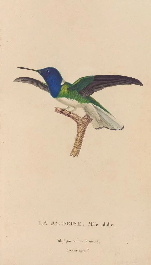René Primevère Lesson, naturaliste et illustrateur du XIXe siècle, a joué un rôle essentiel dans la documentation des espèces aviaires. Son travail s'inscrit dans le mouvement de l'ornithologie, où la précision scientifique se mêle à l'esthétique artistique. Influencé par les découvertes de son époque et par des voyages à travers le monde, il a su capturer l'essence même des oiseaux, notamment ceux des régions tropicales. Son œuvre "Histoire naturelle des oiseaux-mouches" est un témoignage de son engagement à représenter la biodiversité avec rigueur et beauté, marquant ainsi l'histoire de l'art naturaliste.