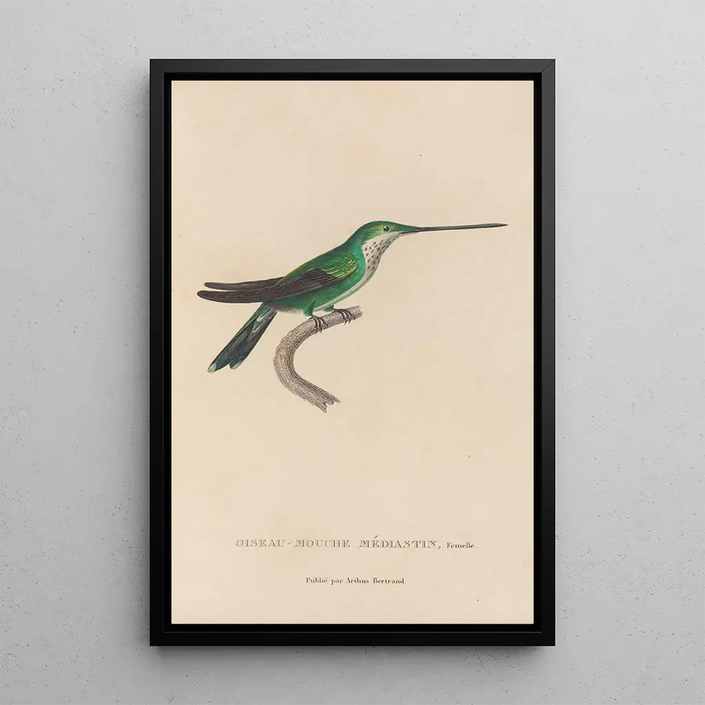 La druk artystyczny Histoire naturelle des oiseaux-mouches Pl30 est une œuvre fascinante qui met en lumière la diversité et la beauté des oiseaux-mouches. Les teintes chatoyantes, allant des bleus profonds aux jaunes éclatants, créent une ambiance dynamique et joyeuse. La technique de gravure de René Primevère Lesson permet de capturer avec précision les détails minutieux des plumages, révélant la grâce et l'élégance de ces oiseaux. Cette toile invite à une exploration visuelle, célébrant la richesse du monde naturel et la magie des créatures ailées.